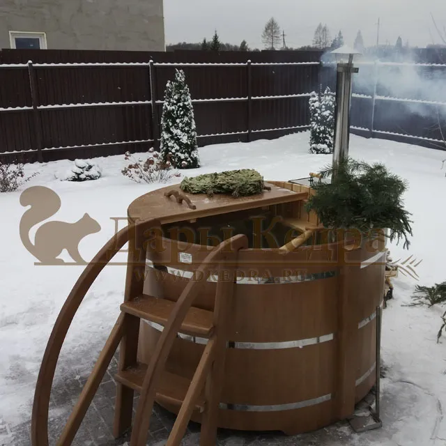 Спасибо компании «Дары Кедра» за эту замечательную купель с внутренней печкой - фурако. Принимаем процедуры на свежем воздухе! Спасибо большое! Рекомендую Всем!