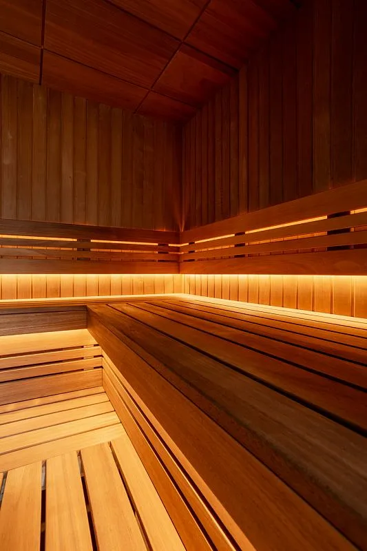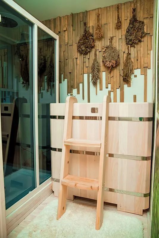 Финская сауна, купель и душевая кабина из кедра в центре здоровья и красоты «Релакс» (г. Новосибирск)