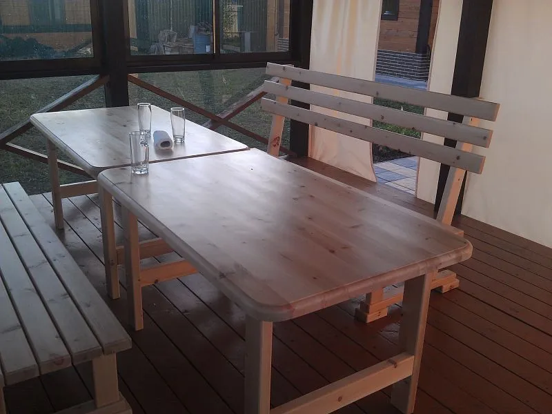 • На веранде с лавочками можно отдохнуть после парилки;