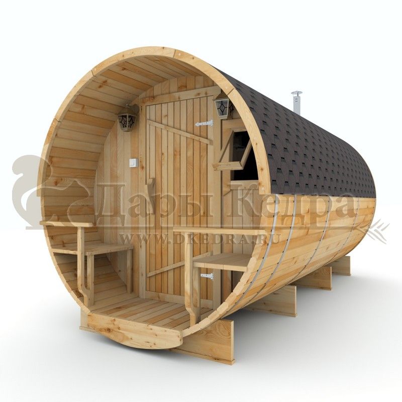 Баня-бочка круглая из кедра с верандой (все размеры)