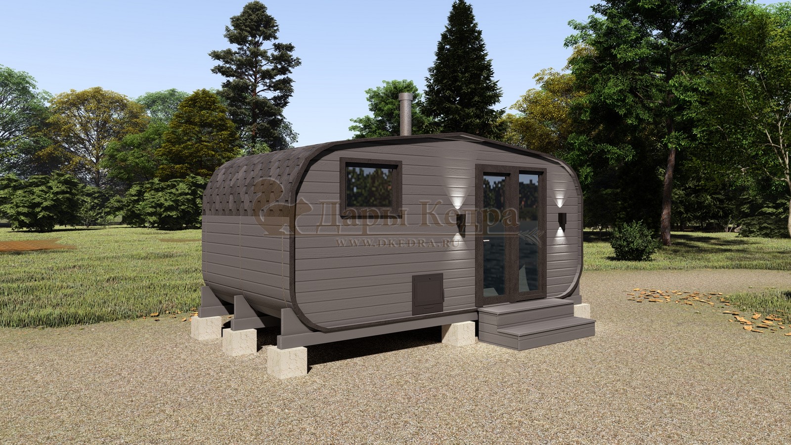 Каждая баня-бочка поставляется в полной комплектации "под ключ", включая печь, дымоход, электрику, бак для воды и мягкую кровлю. Благодаря мобильности конструкции, установка не требует капитального фундамента — достаточно ровной площадки или бетонных блоков.