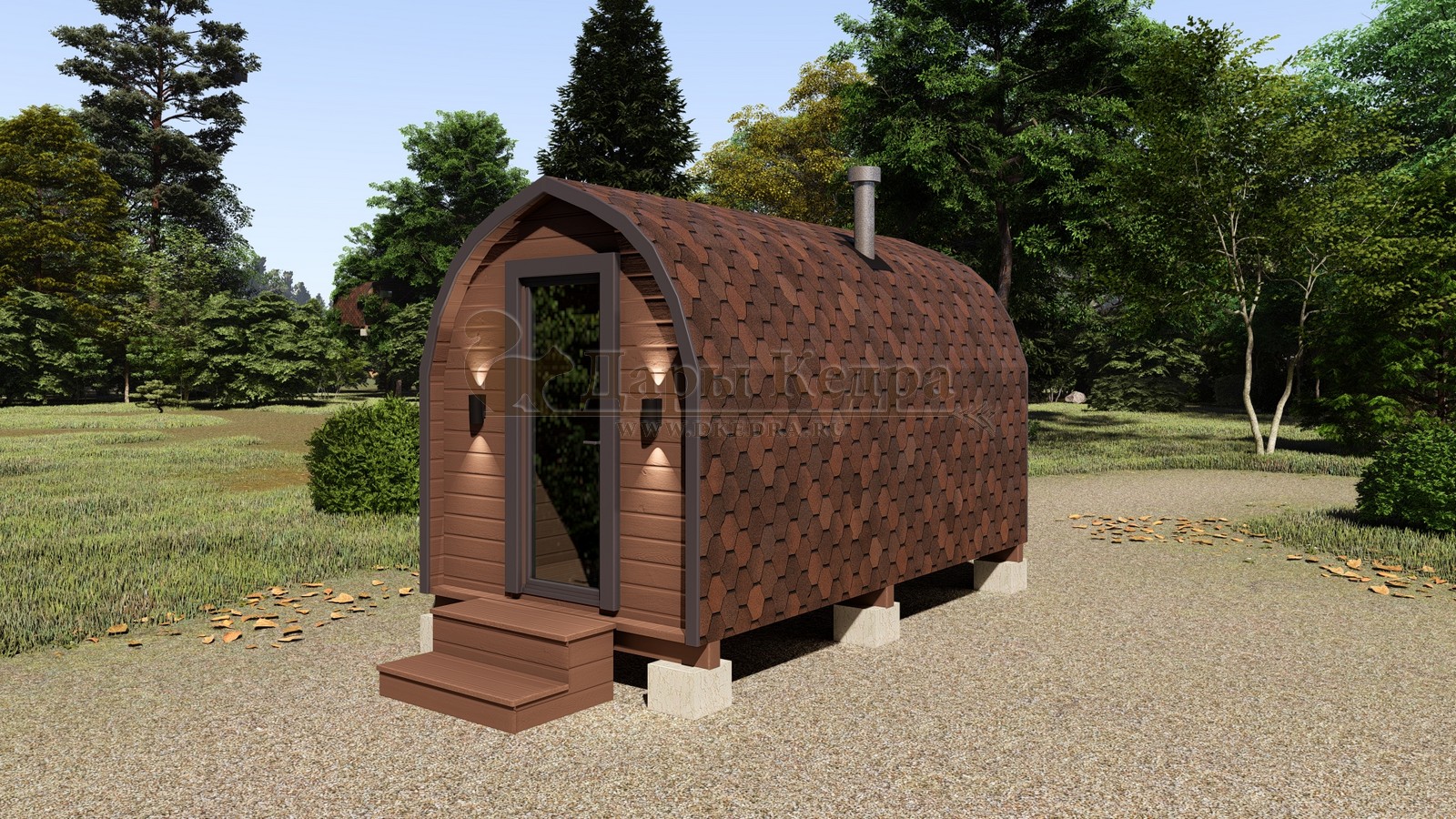 Баня-бочка «Викинг» — это современный взгляд на традиционную баню, выполненный в оригинальном скандинавском стиле. Благодаря высокому корпусу и прямым углам основания внутри создаётся просторное и удобное пространство, а округлая форма потолка обеспечивает быстрый прогрев и равномерную циркуляцию пара.