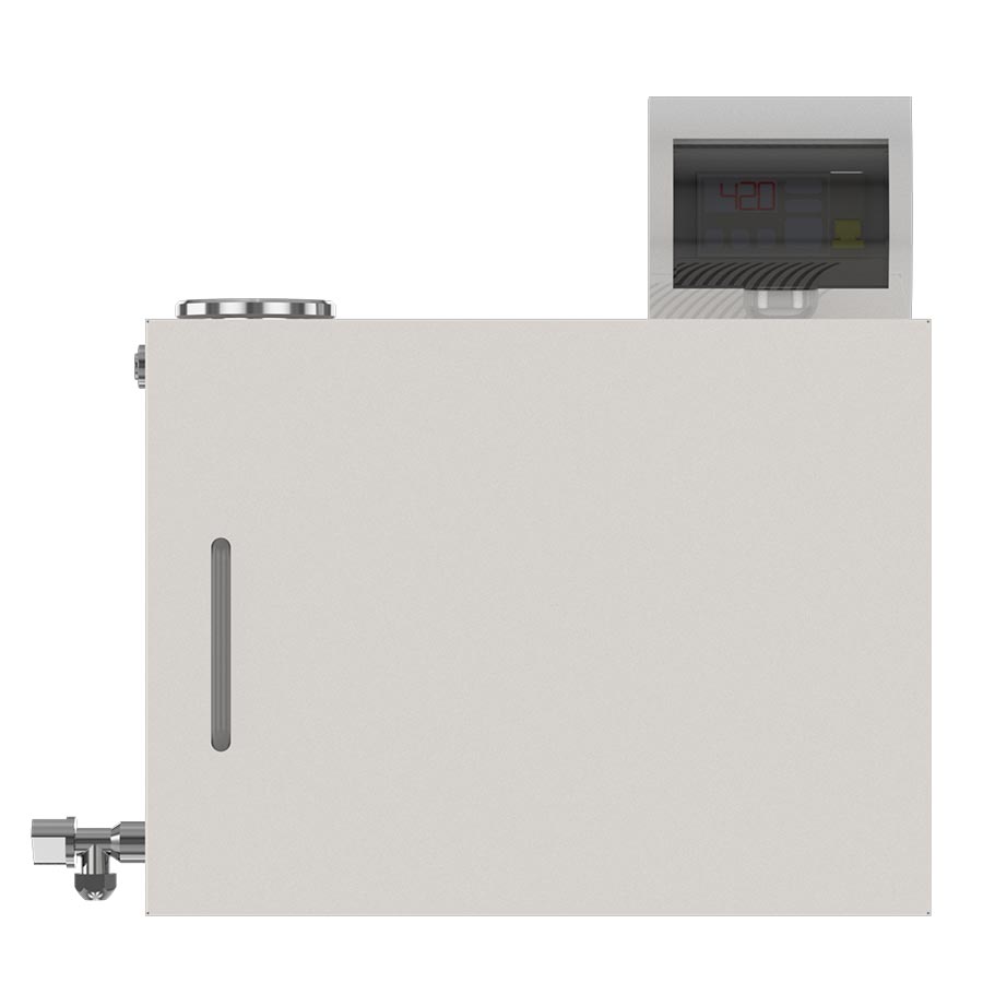 Парогенератор проточный c выносным/встроенным цифровым пультом управления, 4 кВт Проточные парогенераторы подключаются к водопроводу и автоматически добавляют воду в прибор при ее расходовании. Устройство служит для образования пара в саунах, хамамах, банях и душевых кабинах. Мощность стоит выбирать в зависимости от объема парной. Работа парогенератора осуществляется за счет встроенного или выносного пульта управления (на ваш выбор). Он позволяет устанавливать температуру, мощность и время процедур парения. При достижении необходимой температуры происходит автоматическое прекращение подачи тепла для нагрева воды. При снижении температуры более чем на 3°С температурный датчик снова включает подогрев. Таким образом время непрерывной работы парогенератора составляет более 12 часов.