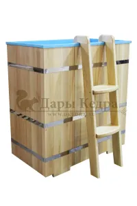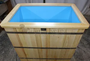 Это емкость для воды с прямоугольной пластиковой чашей. Купель предназначена для отдыха и охлаждения тела после процедур парения. Подходит для уличного и комнатного использования. Для удобства пользования овальная купель с пластиковой вставкой оснащена лавочками, приставной и внутренней лестницей из кедра.