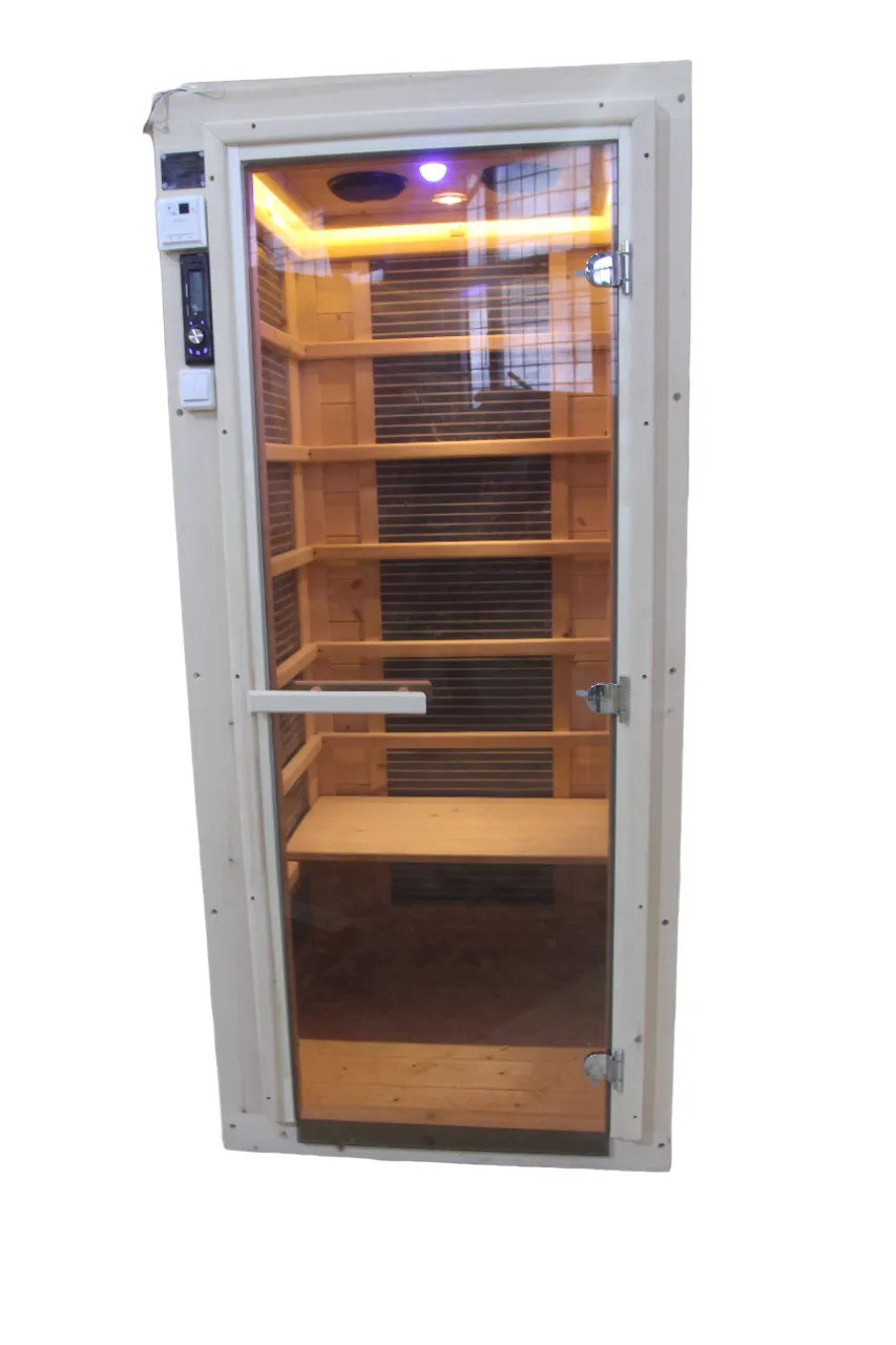 Это специально оборудованная кедровая кабина для прогрева тела человека сухим теплом. Воздух в таких парных не нагревается. Инфракрасные лучи воздействуют на тело, равномерно прогревая мышцы, суставы и органы. Карбоновые излучатели, встроенные в стены кабины, обладают мягким прогревом, что полностью исключает возможность ожога. Работает кабина за счет электричества. Установка сауны в угол, позволяет рационально использовать пространство помещения. Подходит как для домашнего использования, так и для коммерции.